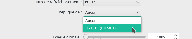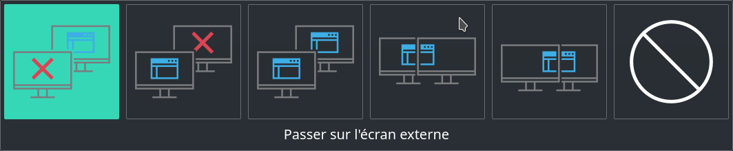 Dès la connexion dans le port HDMI d’un nouvel écran ou vidéo-projecteur, une fenêtre s’ouvre.