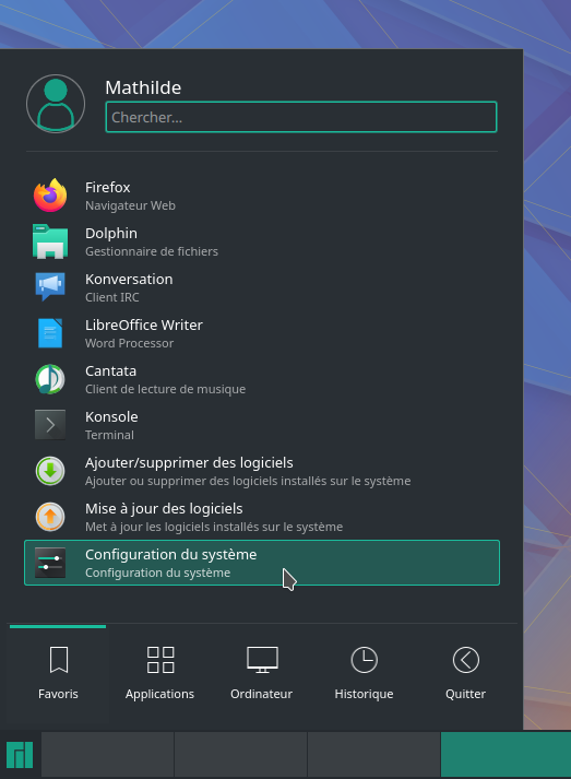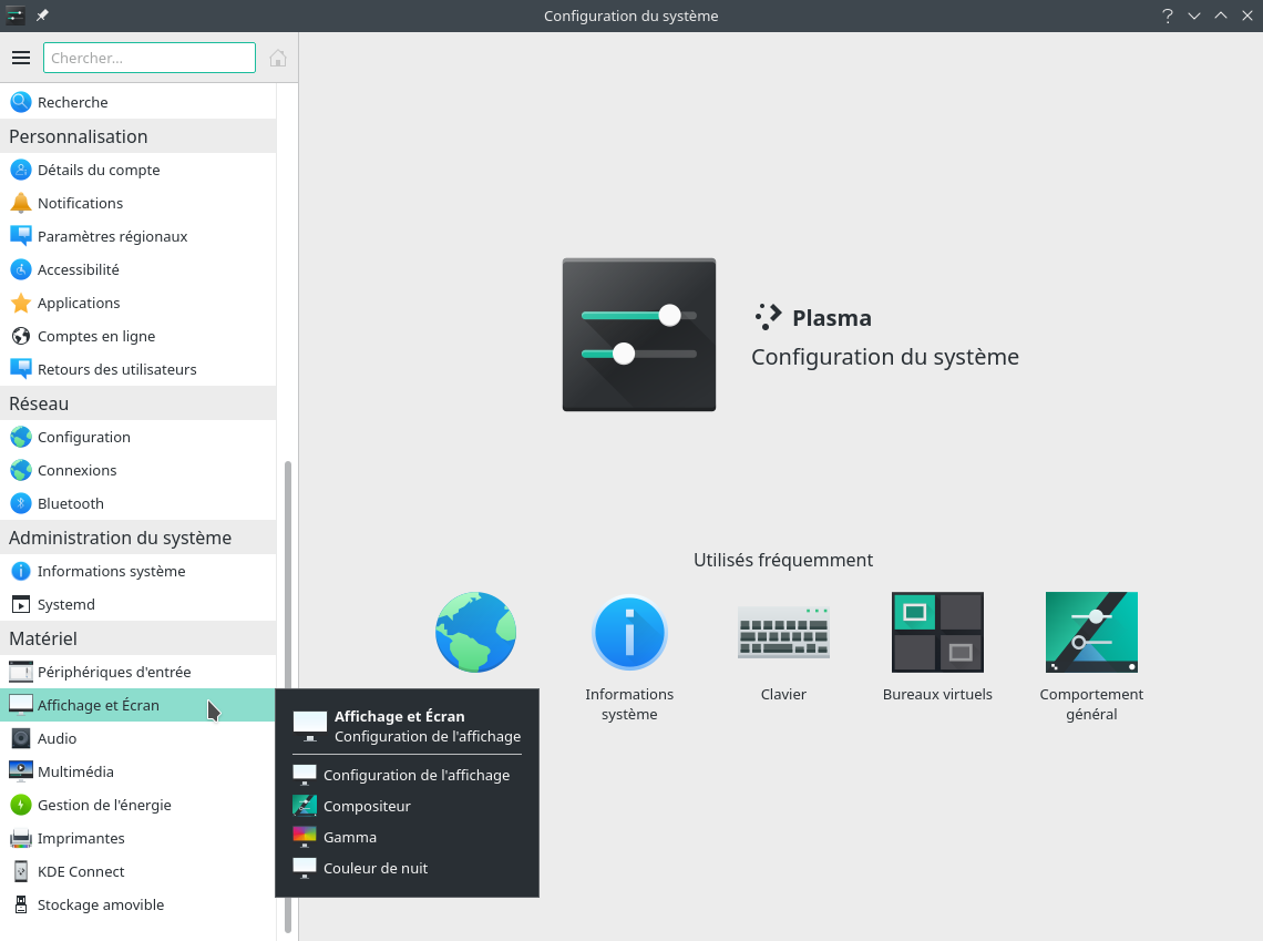 Vous pouvez ensuite modifier la résolution ou le mode de sortie en cliquant sur ‘Configuration du système’ dans le menu du lanceur d’application.